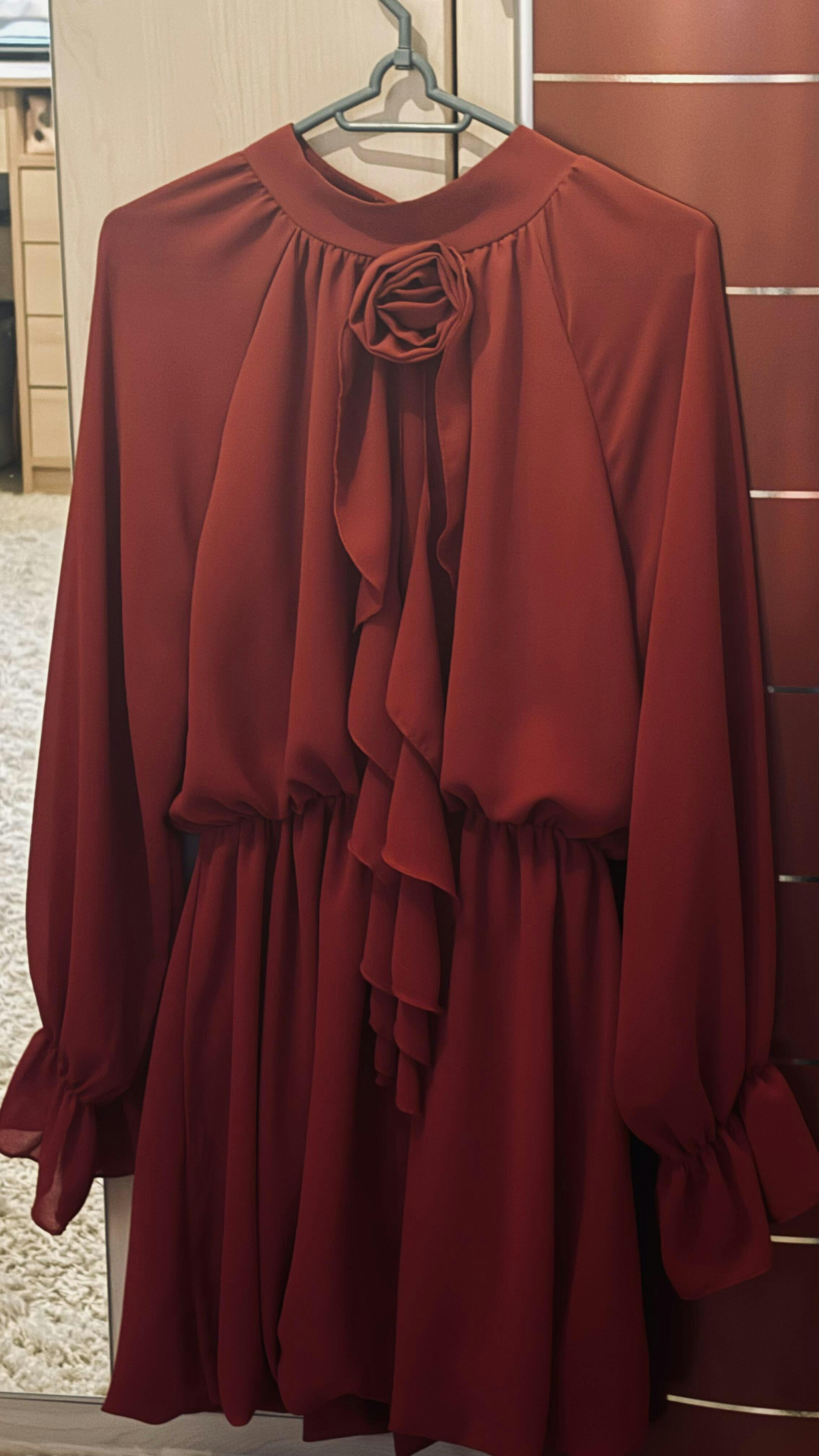 Dieses ausgestellte Cocktailkleid ist ein Vorschlag für Frauen, die gerne elegant und stilvoll aussehen. Hergestellt aus einer hochwertigen Mischung aus Polyester, Viskose und Elasthan, liegt es wunderschön auf der Silhouette und bietet gleichzeitig Tragekomfort. Der Gummizug in der Taille betont die Taille und garantiert eine perfekte Passform. Das Modell in Minilänge und mit langen Ärmeln bezaubert mit subtilen Details, Rüschen an den Ärmeln verleihen Leichtigkeit, und die Rüsche mit der dekorativen Rose auf der Vorderseite zieht die Blicke auf sich und unterstreicht den einzigartigen Charakter des Kleides. Der runde Ausschnitt verleiht dem Ganzen Klasse, und das glatte Muster lässt die Kreation elegant und zeitlos wirken. Das Kleid hat keinen Verschluss, was es unglaublich bequem zu tragen macht. Das Futter sorgt für Komfort und eine perfekte Anordnung des Materials. Dies ist die ideale Wahl für eine Party, einen Empfang oder Silvester, um Ihnen Anmut und Selbstvertrauen in jeder Situation zu verleihen.