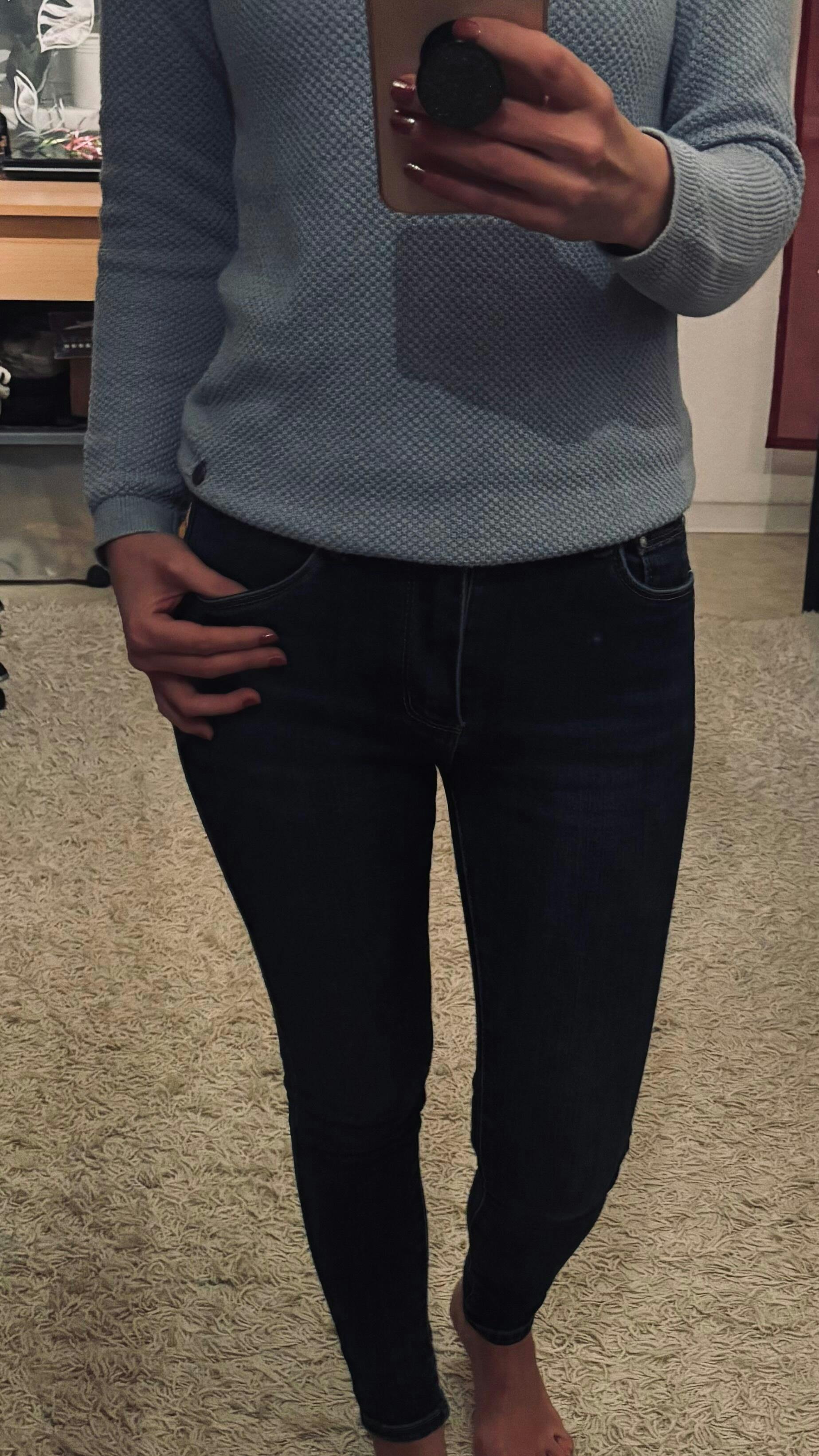 Die Damen Skinny Fit Jeans sind die perfekte Kombination aus weiblichem Stil und täglichem Komfort. Hergestellt aus einer hochwertigen Mischung aus Baumwolle, Elasthan und Polyester, sind sie elastisch, weich und passen sich perfekt der Silhouette an, betonen ihre Vorzüge. Das Modell mit mittlerer (regulärer) Taille bietet Tragekomfort und eine ideale Passform in der Taille, während die schmal zulaufenden Skinny-Beine die Beine schön formen und ihnen ein schlankes Aussehen verleihen. Ein weiterer Vorteil ist der Push-Up-Effekt, der die Gesäßpartie subtil anhebt und betont, was einen attraktiven, weiblichen Schnitt garantiert. Die Jeans haben einen Reißverschluss und einen Knopfverschluss, Einschubtaschen vorne und offene Taschen hinten, was sie sowohl stilvoll als auch praktisch macht. Dies ist ein Modell, das sich hervorragend für den täglichen, legeren Stil eignet, perfekt für die Arbeit und Treffen mit Freunden.